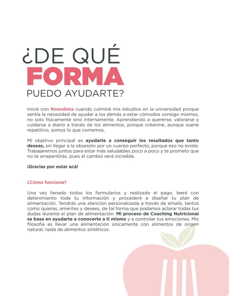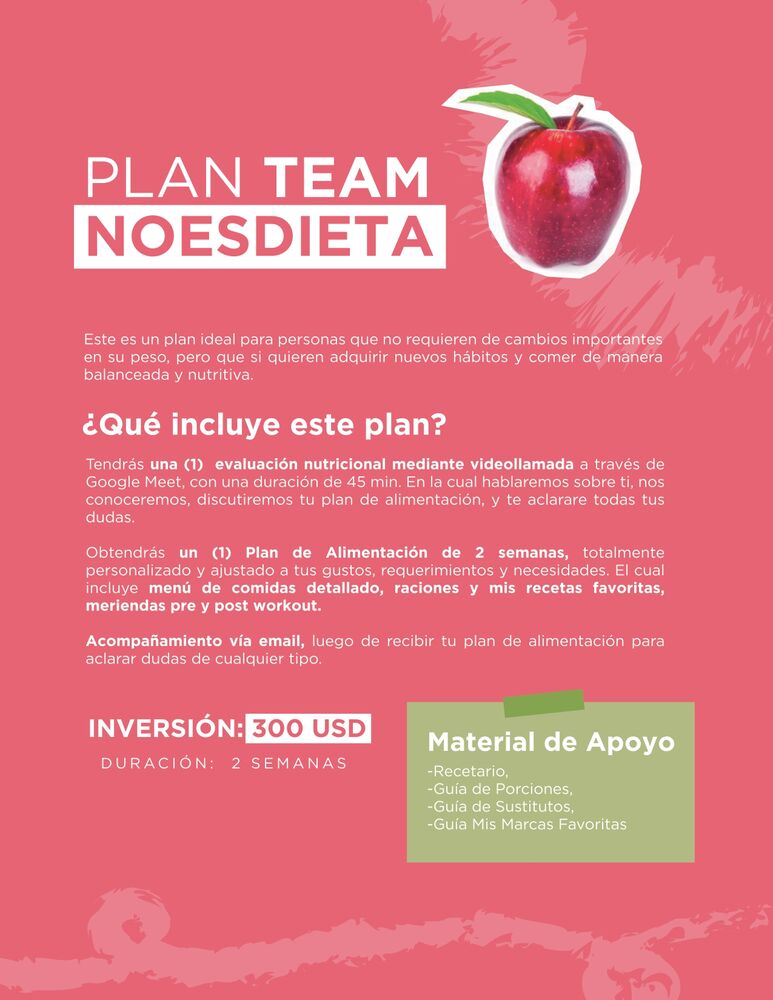 Este es un plan ideal para personas que no requieren de cambios importantes en su peso, pero que si quieren adquirir nuevos hábitos y comer de manera balanceada y nutritiva.